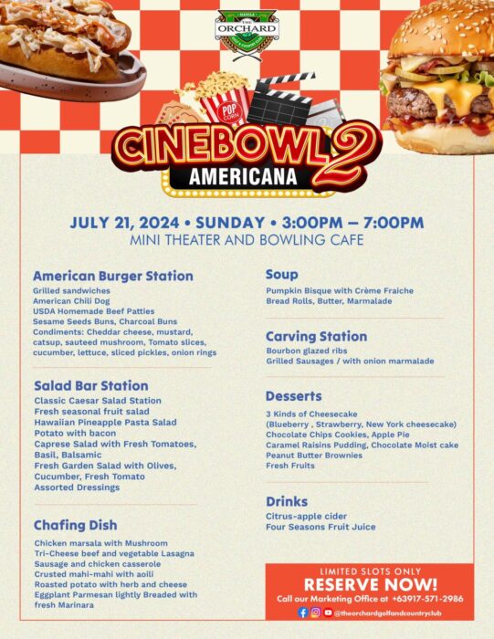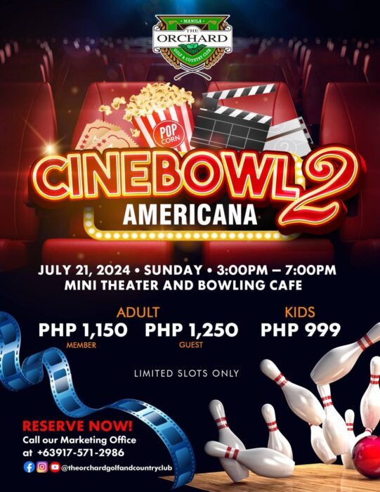 Strike up fun with bowling, savor delicious food, and enjoy a blockbuster film—all at CineBowl Americana 2! Join us on July 21st from 3 PM – 7 PM for the ultimate bonding experience.