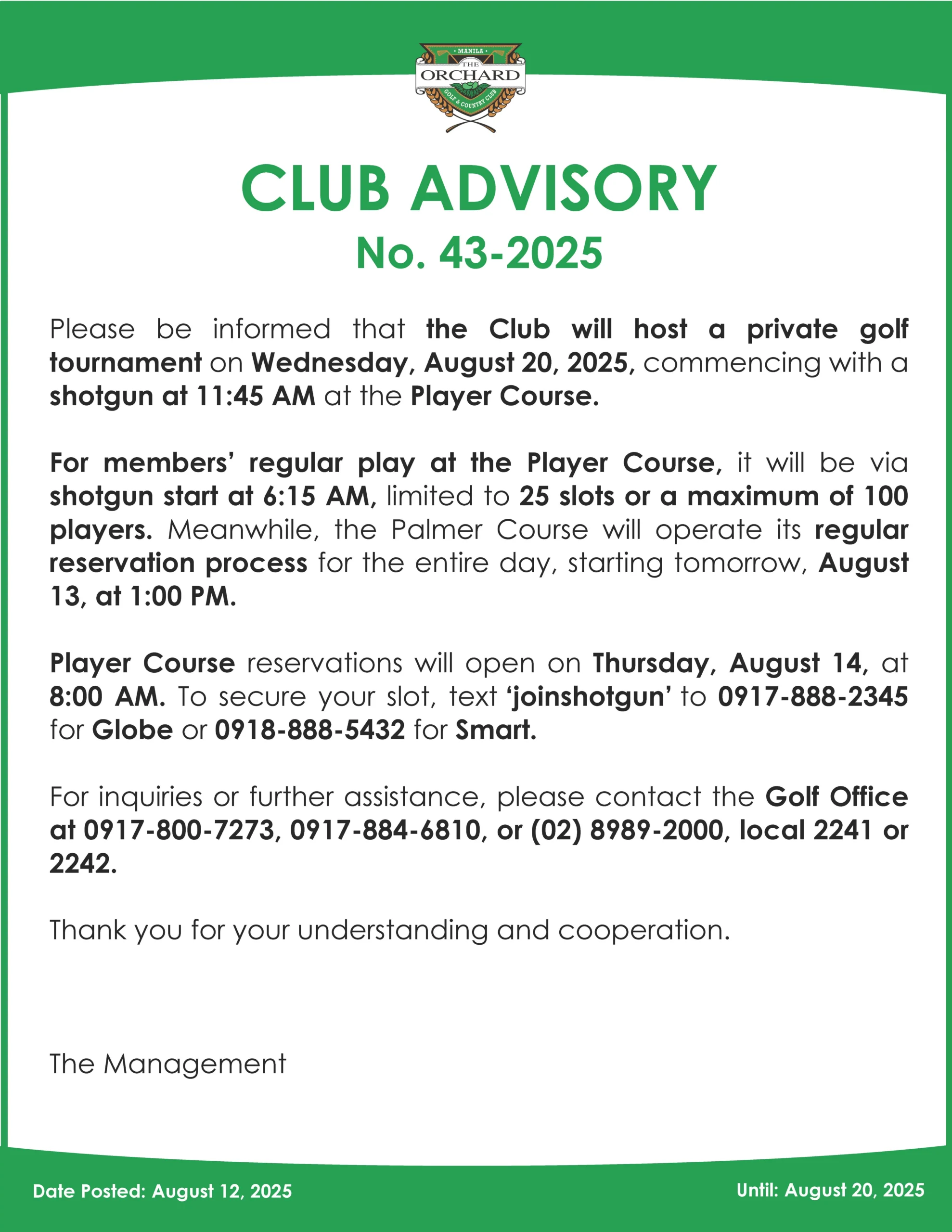 Club Advisory No. 43-2025
