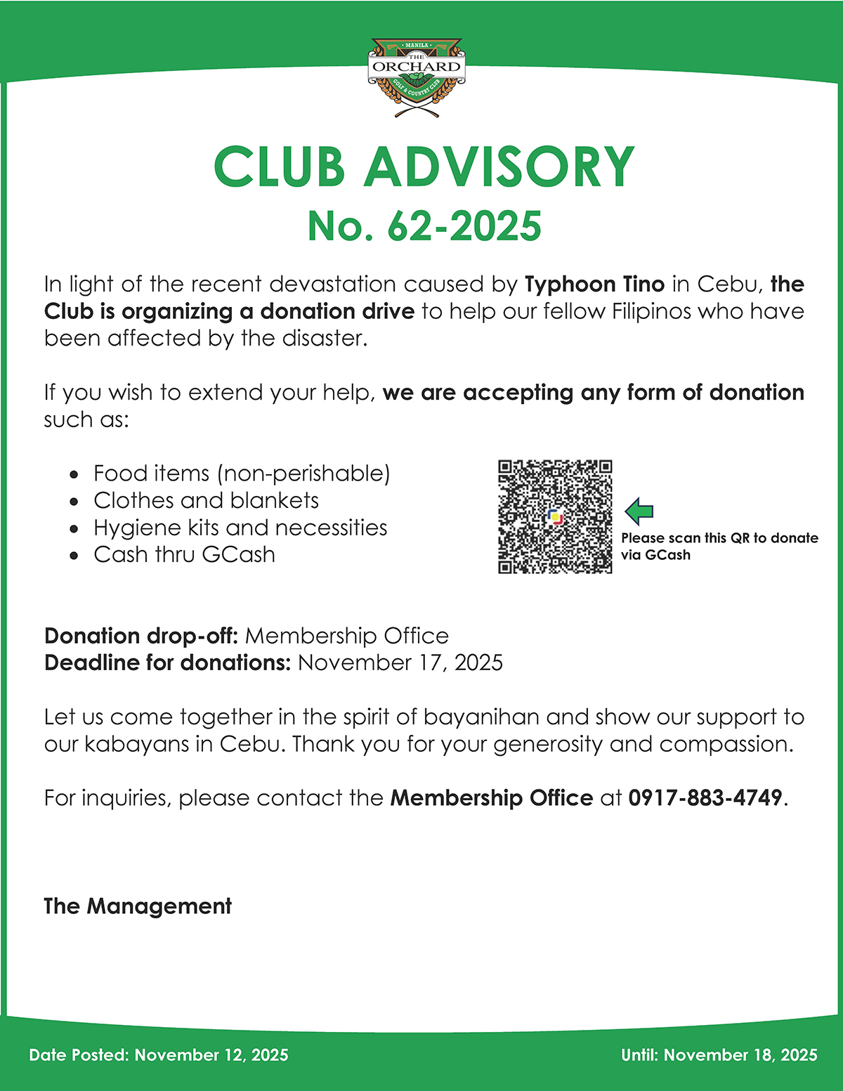 Club Advisory No. 62-2025