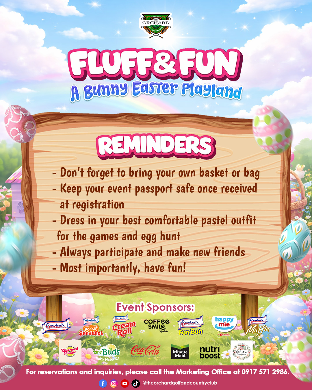Here are little reminders for Fluff & Fun: A Bunny Easter Playland happening this Sunday, April 5, from 12 PM to 4 PM at the Grand Ballroom! 🥚✨