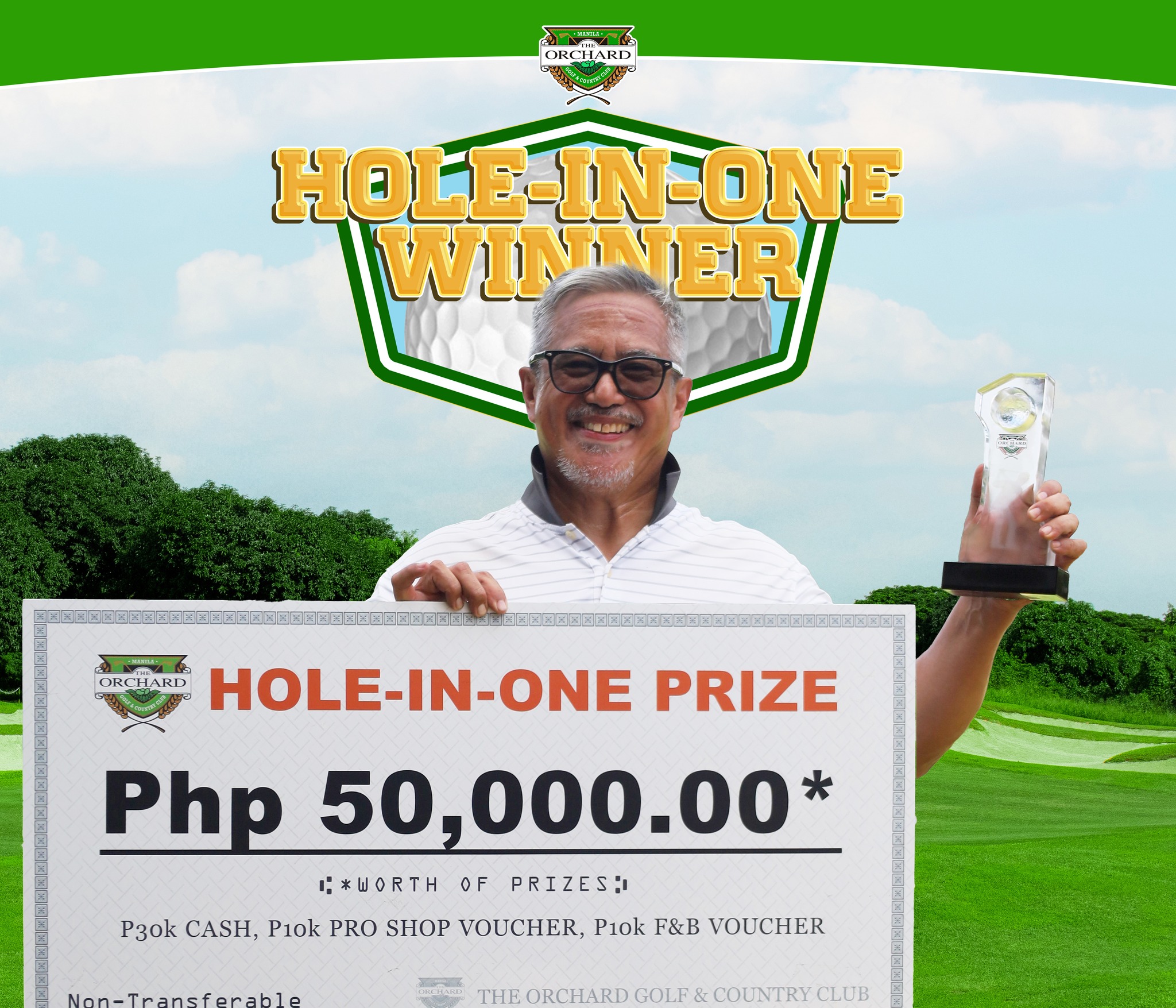 Hole in One | December 30, 2025 Congratulations to Director Julio Felino Manalo for making a hole-in-one on Palmer Hole #12 today, December 31, 2025. He used a Bridgestone 1 golf ball and Tourstage X Blade Forged pitching wedge golf club, 118 yards from the silver tee.