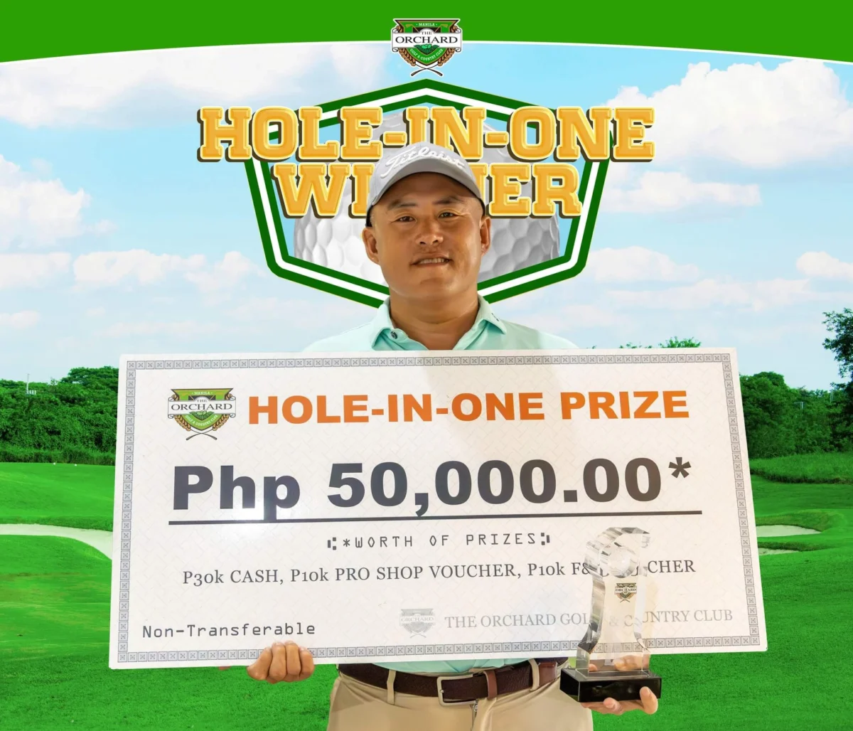 Hole in One | March 28, 2025 Congratulations to Mr. HongZheng Lu for making a hole-in-one on Player Hole #5 today, March 28, 2025, using a Titleist 3 golf ball and 4iron (Srixon) golf club, 195 yards from the blue tee. He won P50,000.00 worth of hole-in-one prize.