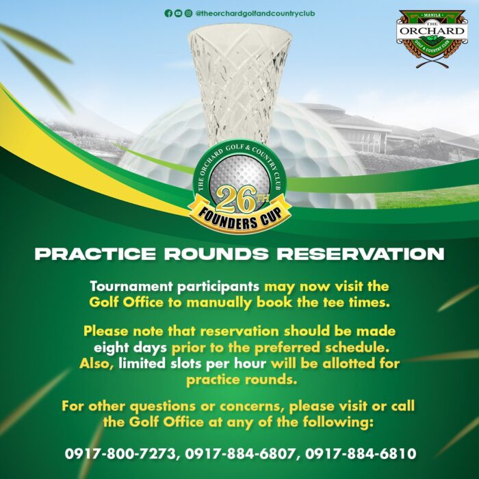 Practice Rounds Reservation – 26th Founders Cup